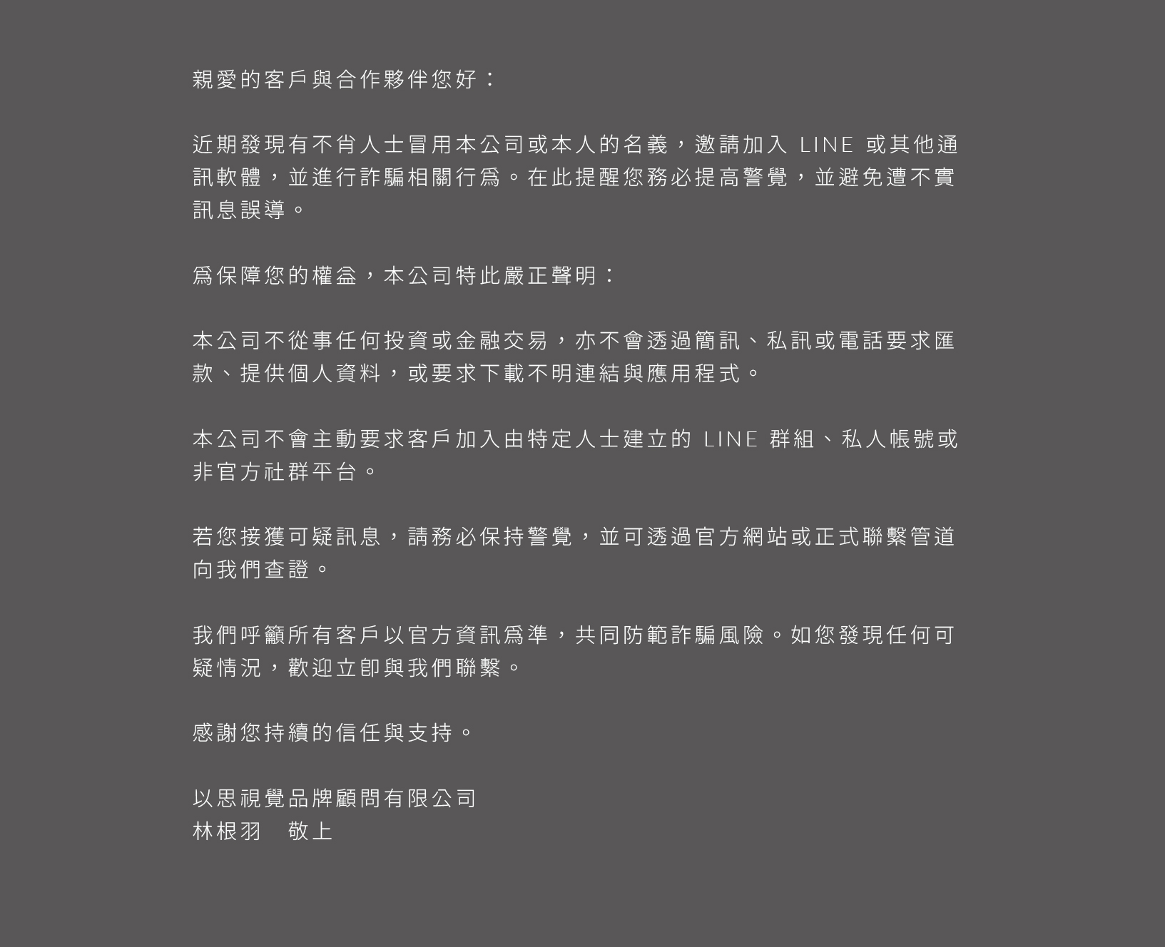 我們呼籲所有客戶以官方資訊為準,共同防範詐騙風險。如您發現任何可疑情況,歡迎立即與我們聯繫。